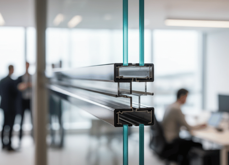 Em uma divisória de vidro duplo, o silêncio é a promessa cumprida. O sistema consiste em dois painéis de vidro separados por uma câmara de ar hermeticamente selada.