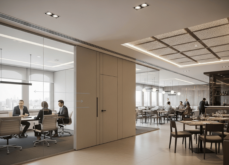 A tecnologia de automação suporta a flexibilidade necessária para o trabalho híbrido. As divisórias retráteis automatizadas (embora mais complexas) podem ser movidas com o toque de um botão, permitindo que a empresa crie espaços multifuncionais e reconfiguráveis com agilidade, um diferencial de alto padrão na gestão de ativos imobiliários em São Paulo.