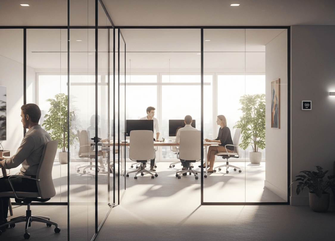 Um dos maiores desafios de um ambiente com design industrial é o ruído. Superfícies duras como concreto e tijolo podem causar reverberação e tornar o espaço barulhento. A Linha 65 e a Linha 90 da PDF Premium, com suas divisórias de vidro acústico, são a solução perfeita. O vidro duplo com uma câmara de ar otimizada e vedação de alta precisão é projetado para minimizar a transmissão de som, criando zonas de silêncio vitais para a concentração e o trabalho focado.