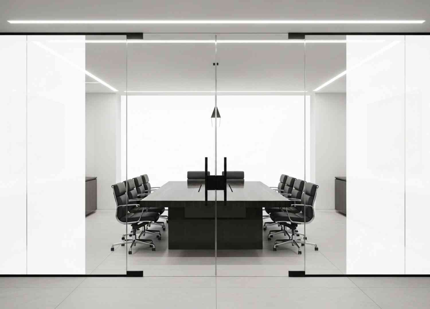 A integração de divisórias de vidro com tecnologia de automação cria um escritório que não é apenas bonito, mas que “pensa” e se adapta em tempo real às necessidades de seus usuários.